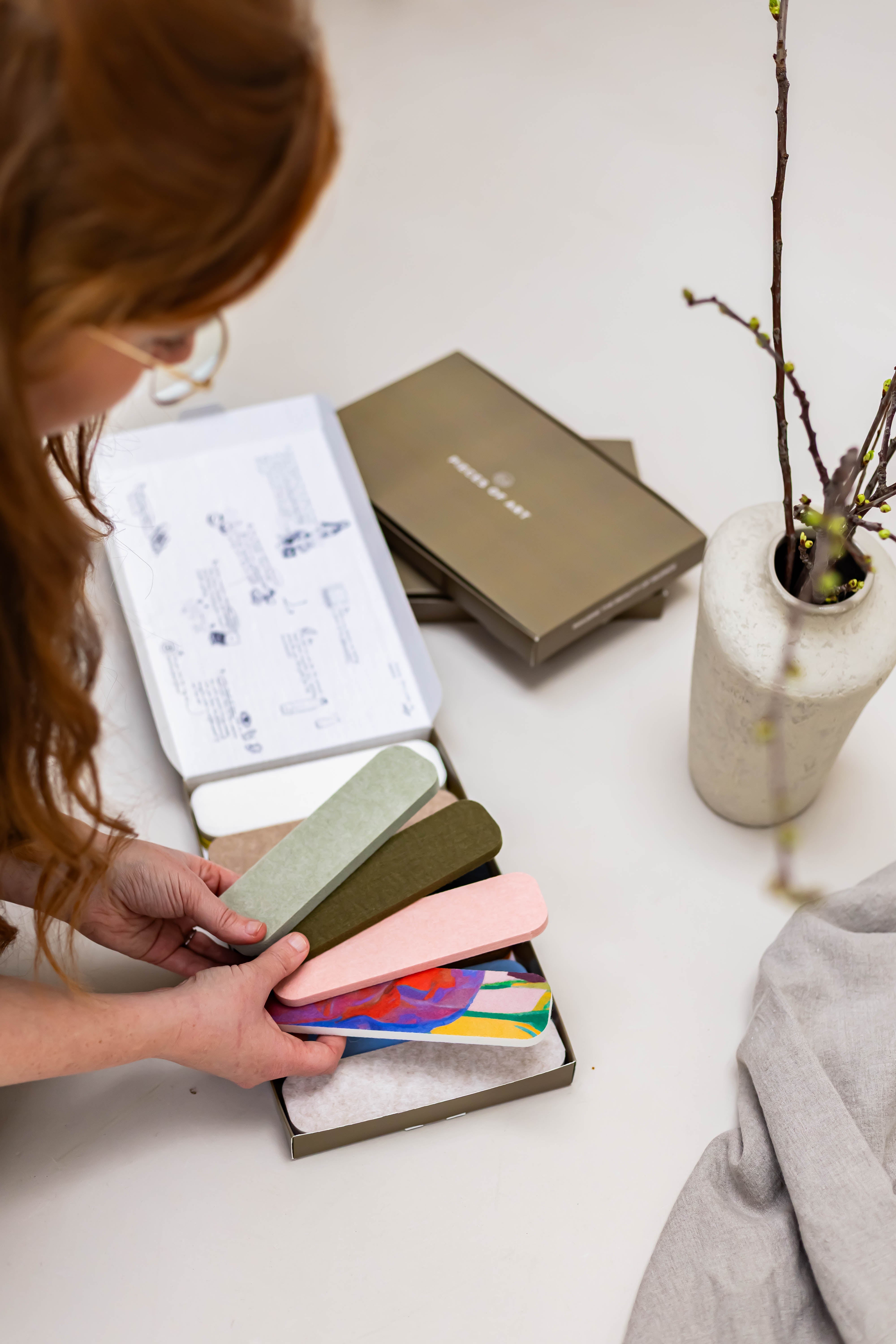 Weet je niet zeker welke kleur het beste bij je interieur past? Dan is onze staalset iets voor jou! Hij bevat alle beschikbare kleuren en is ideaal om met vertrouwen je keuze te maken. Je kunt het materiaal voelen en zien en het vergelijken met de kleuren in je interieur. En aan de binnenkant van de monsterdoos vind je heel wat praktische tips om je te helpen de juiste keuze te maken!