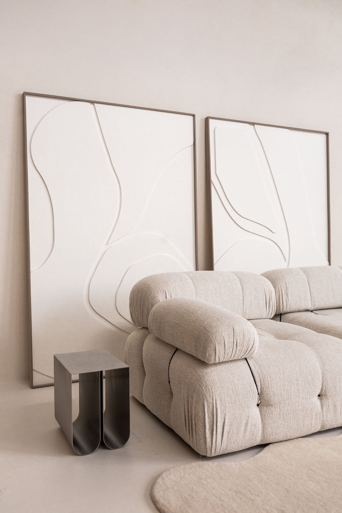 In de afbeelding zie je een custom-made ontworpen artwork voor Dukes' Palace in Brugge. Dukes' had de specifieke wens om onderscheidende en akoestische kunstwerken in de hotelkamers op te hangen. Hier hebben wij de vraag van Dukes' vertaald naar een concreet ontwerp. Na goedkeuring van het ontwerp zijn tientallen kamers uitgevoerd in deze mooie style met een Pieces of Art.