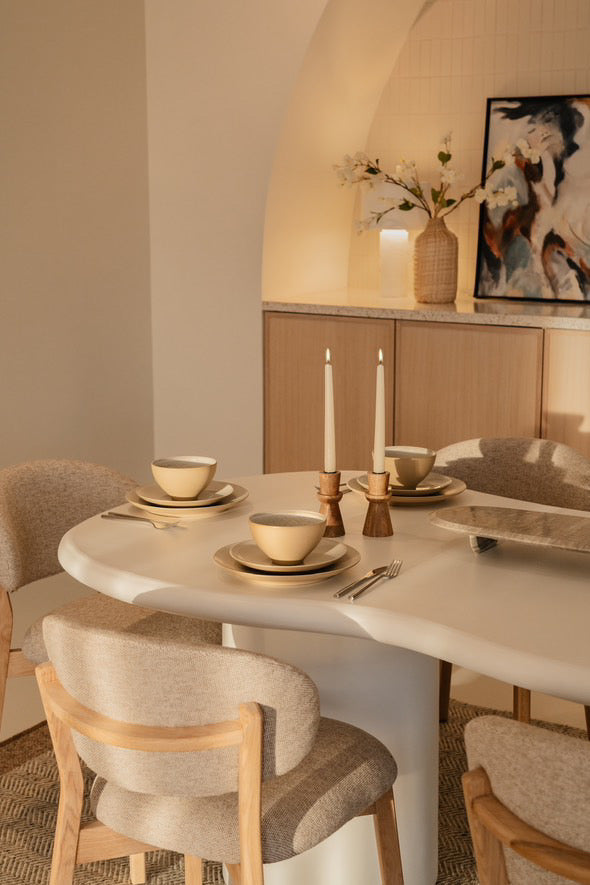 The color Beige is a soft, neutral and accessible color. The color can easily be combined with other colors, such as brown and white. The color is lighter than Earthy Beige and can be combined as artwork with the color Walnut and the color Deep Black. With these two colors you combine earth tones in an artwork, which looks good in a Japandi interior. But also in a minimalist, wabi sabi, oriental, bohemian, botanical and Scandinavian interior.