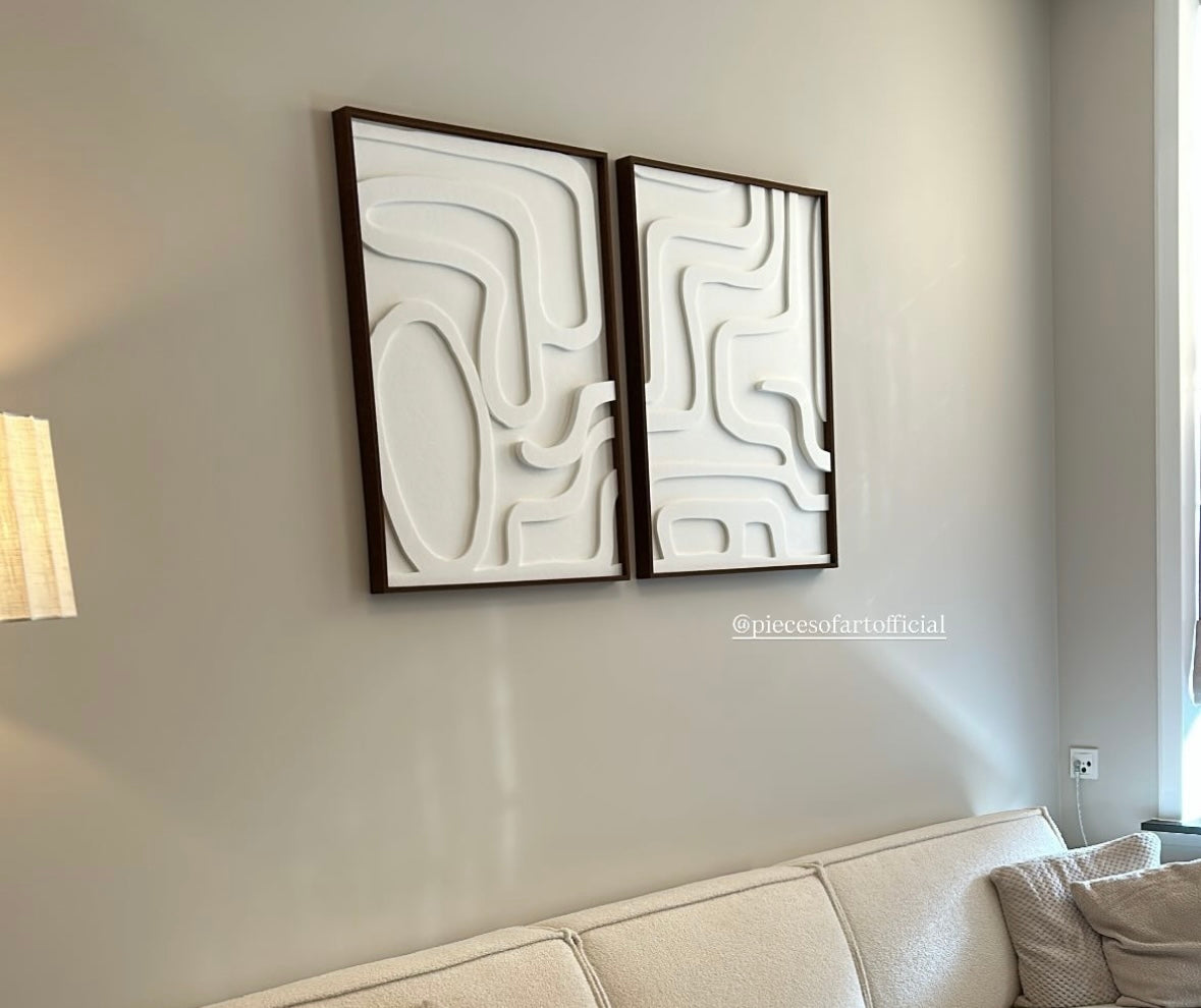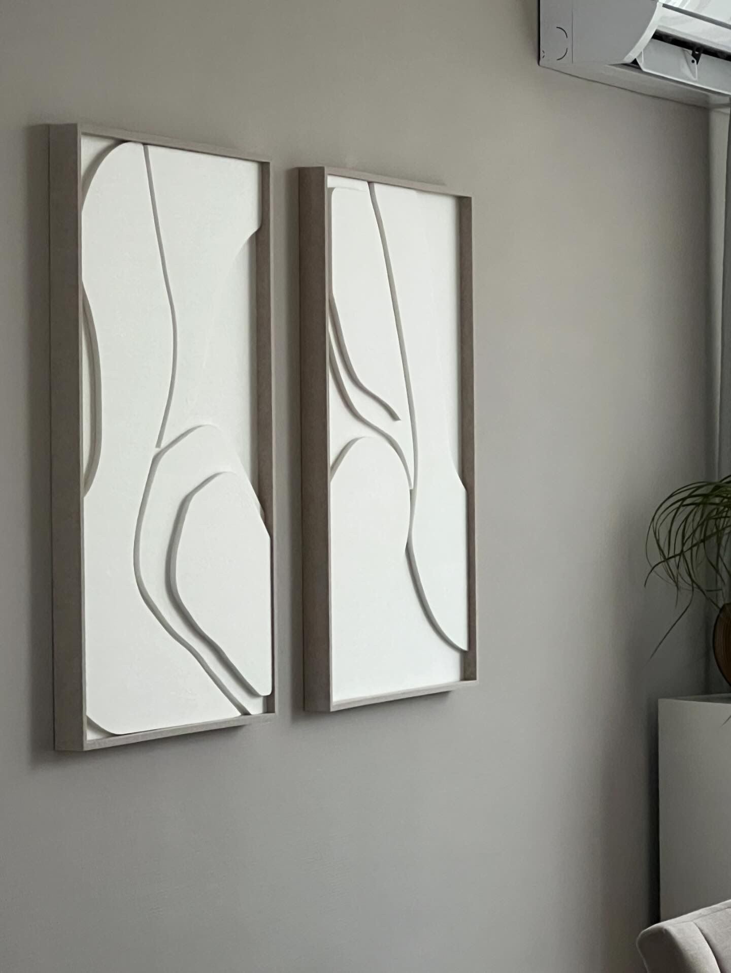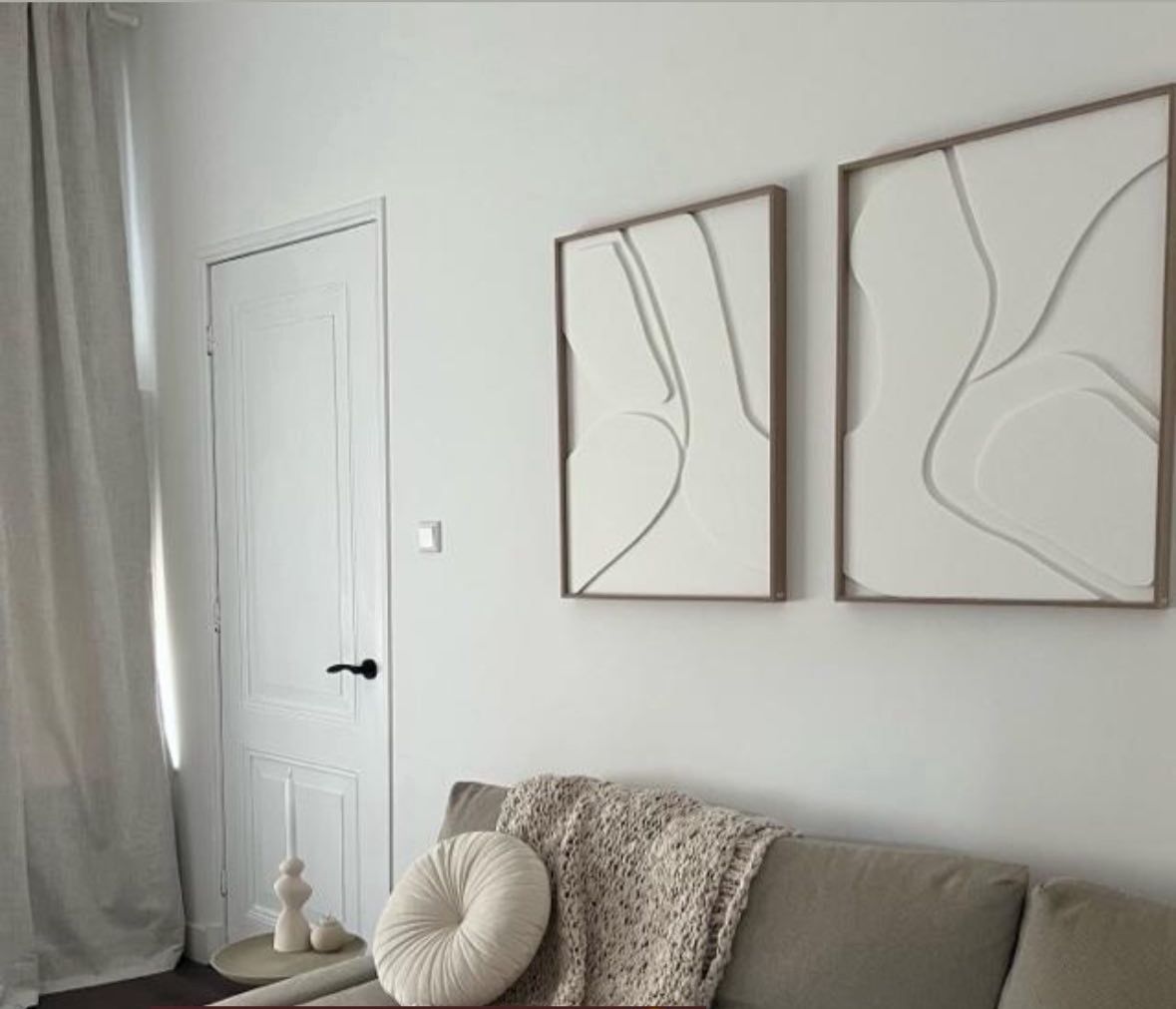 Ivory is a soft, white colour that is best compared to off-white. This colour is easy to combine with other colours and, due to its light and neutral appearance, it looks good in interiors with light elements. Think of interior styles: Scandinavian, minimalist, Japandi, bohemian (rattan), Mediterranean, but also shabby chic, rural and romantic. Do you want a light addition to your interior? Then you are completely right with your Piece of Art in the colour Ivory. In terms of combinations, it works well with the colour Earthy Beige, but in combination with a black frame you get a tough look that beautifully outlines the work.
