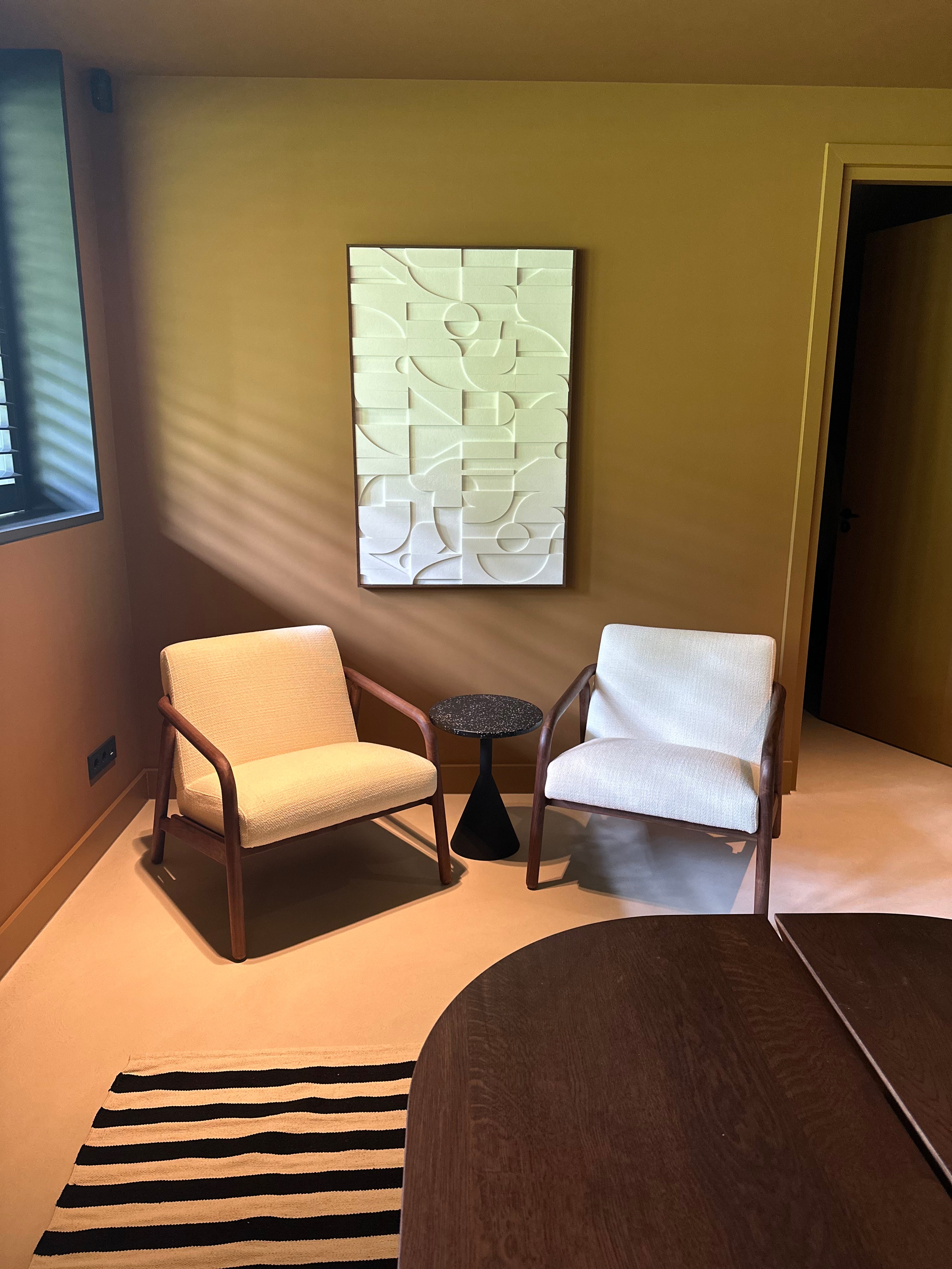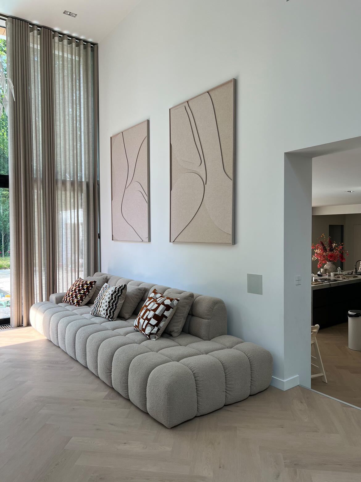 Because the material has an open structure, sound can be absorbed well. This way, the work also contributes to better acoustics! Do you want to know how you can improve the acoustics in your home? Then click on this link.